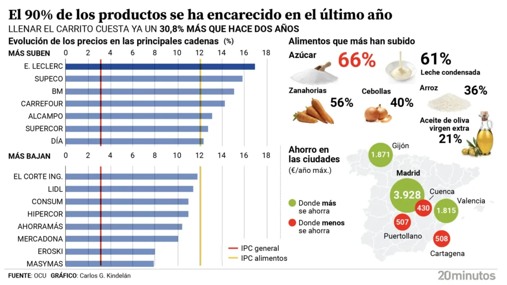 - El impacto varía según el supermercado: elegir bien la cadena puede suponer cientos o miles de euros al año.
